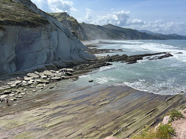 Zoals Birdybear al schreef: next stop Zumaia. Slechts een uurtje van San Sebastian en onderweg even de tijd om nieuw proviand in te slaan. Onze camping ligt net buiten het centrum dat we zowel te voet als met de bikes bezoeken. Zumaia staat onder andere bekend om het natuurwonder Flysch. En om de verschillen goed de kunnen waarnemen bezoeken we Flysch zowel bij eb als bij vloed.