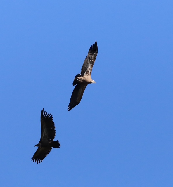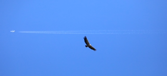 En dat gelukje overkwam ons op het moment dat we grote gevleugelde vrienden spotten boven de schitterende weg waar we op dat moment op rijden. Gelukkig is er een parking nabij doch helaas zijn de grote ‘zwevers’ snel uit het zicht. We besluiten te blijven en parkeren de Birdymobiel op het daarvoor bestemde en vrijwel lege terrein. De grote lens en het statief komen gelukkig niet tevergeefs tevoorschijn. We genieten van de luchtacrobatiek boven ons voordat uiteindelijk de nacht valt.